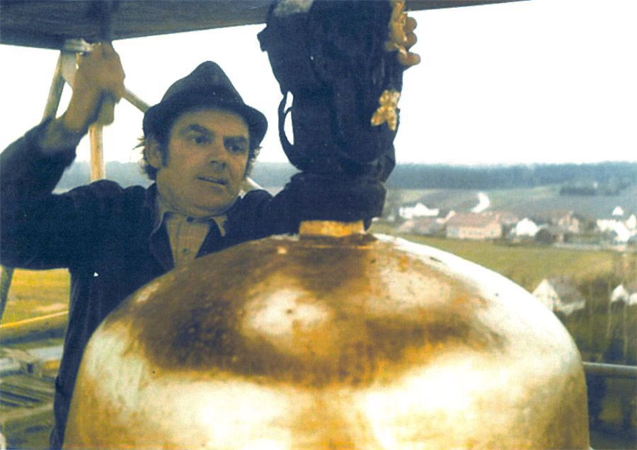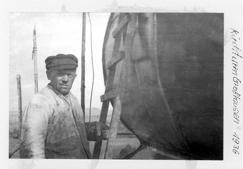 Firmengründer Karl Wundlechner auf dem Kirchturm Großhausen, 1936